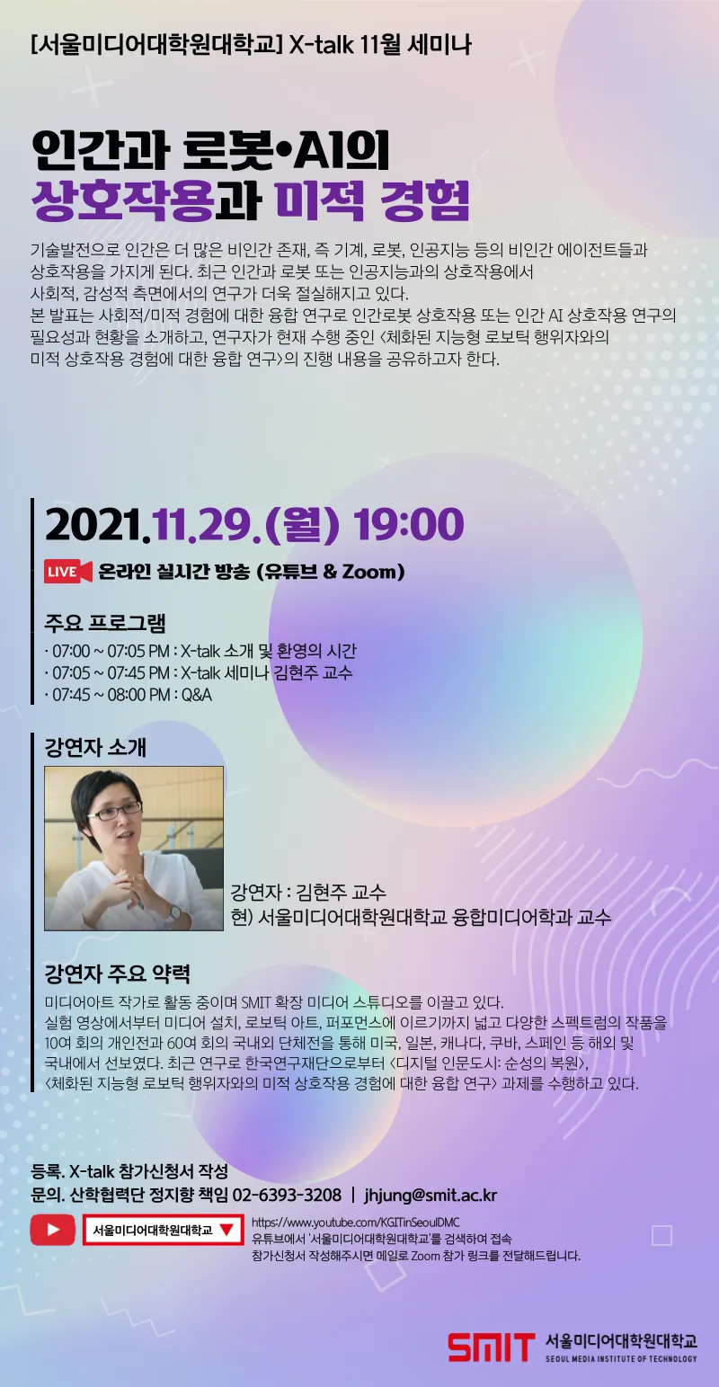 19:05~19:45 - 김현주 교수 <인간과 로봇·AI의 상호작용과 미적 경험>