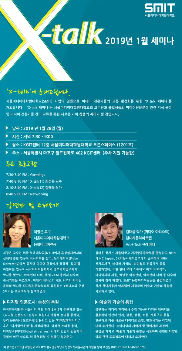 장 소: KGIT센터 12층 서울미디어대학원대학교 오픈스페이스