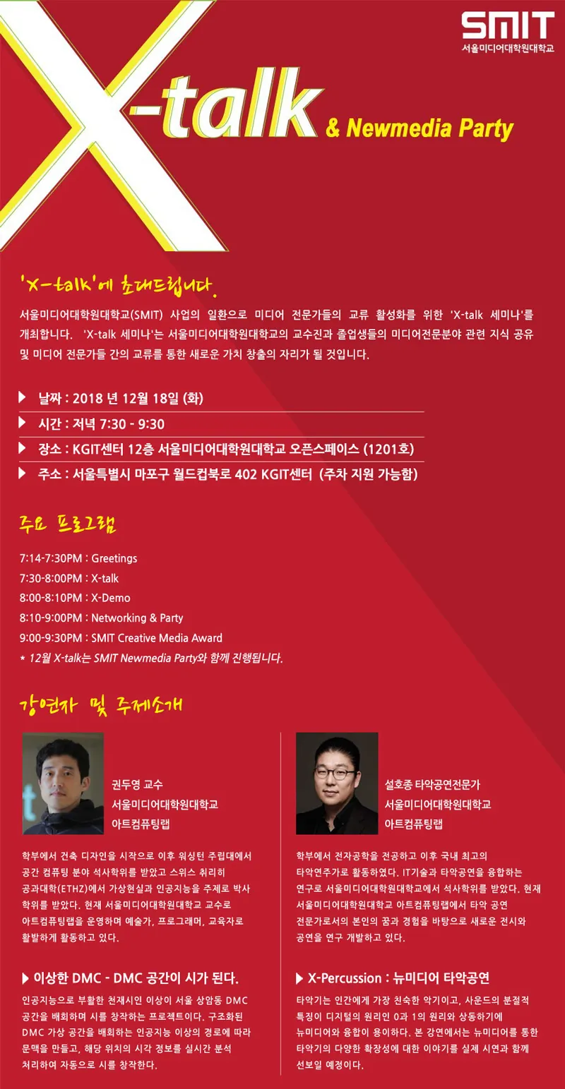 장 소: KGIT센터 12층 서울미디어대학원대학교 오픈스페이스