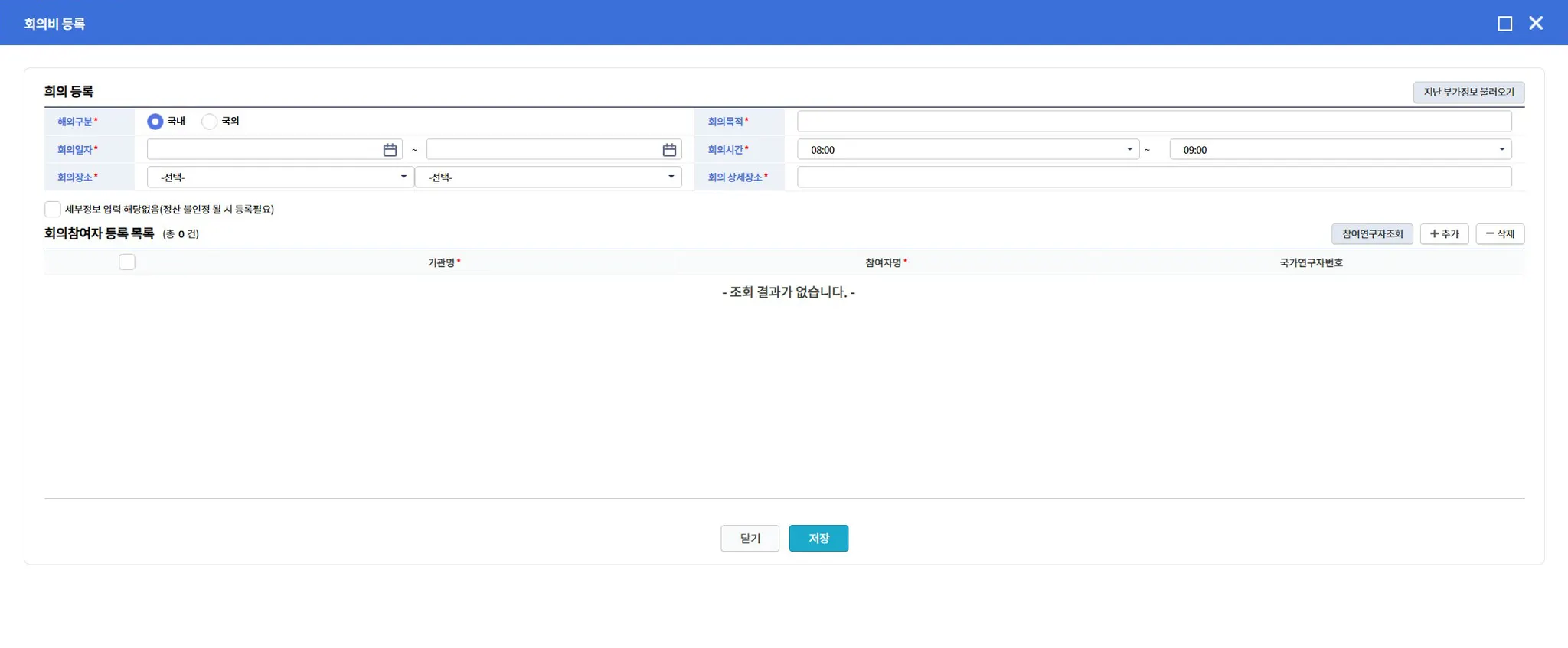 연구활동비 내 출장비, 회의비, 외부전문기술 활용비 집행시 세부사항* 추가 입력