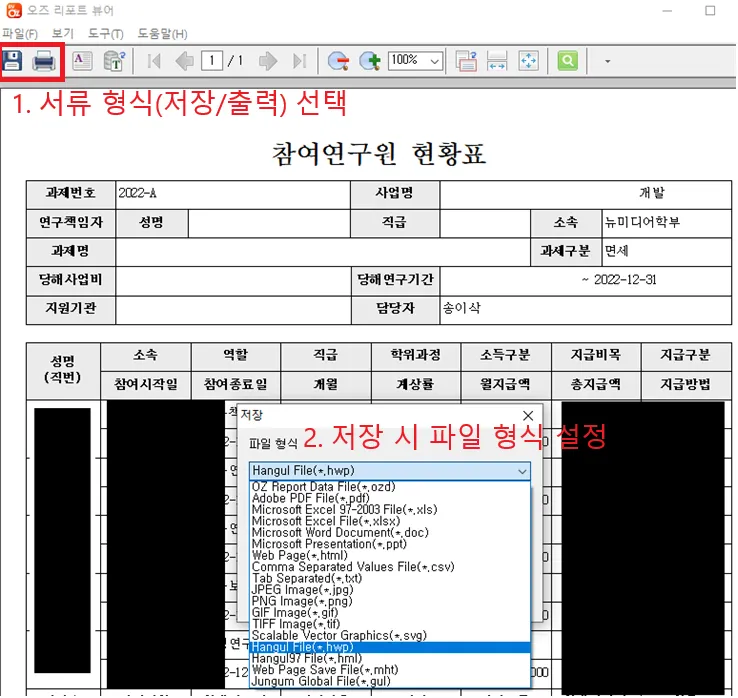 한글, 엑셀, PDF 등 다양한 형식 지원