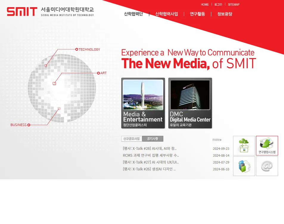 산학협력단 홈페이지 메인에서 오른쪽 상단의 아이콘 바로가기로 접속하실수도 있습니다.