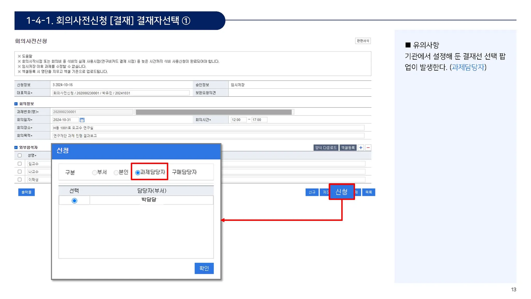 회의시작시점 또는 연구비카드결제 시점 전까지 전자결재 완료되어야 함