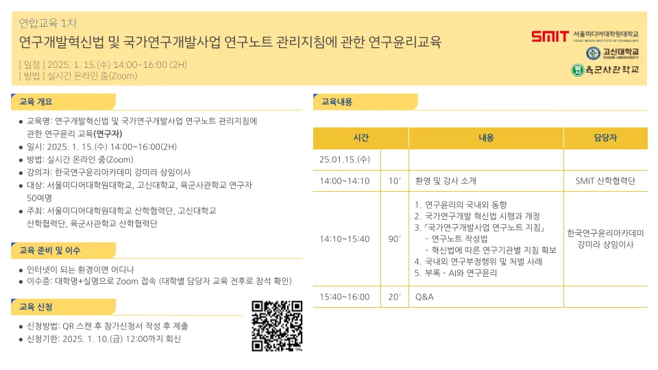 연합교육 1차 ‘연구개발혁신법 및 국가연구개발사업 연구노트 관리지침에 관한 연구윤리교육’